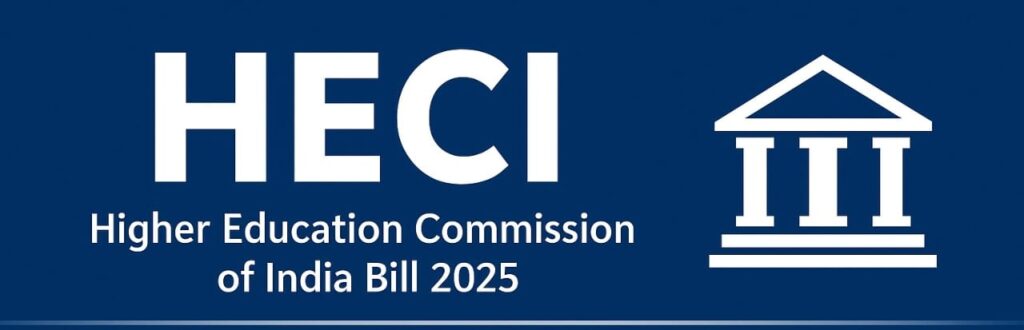 HECI बिल 2025 भारत में उच्च शिक्षा के लिए एकीकृत नियामक संस्था बनाने का प्रस्ताव है, जो UGC, AICTE और NCTE की जगह लेगा।